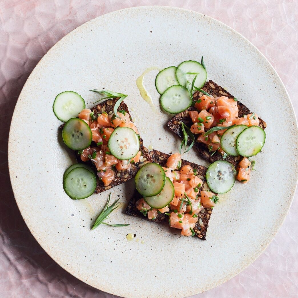 El plato hecho con salmón ahumado se llama tartar de salmón.