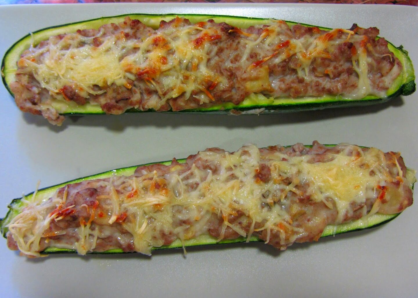| – Preparación: vaciar los calabacines y rellenar con la mezcla. |