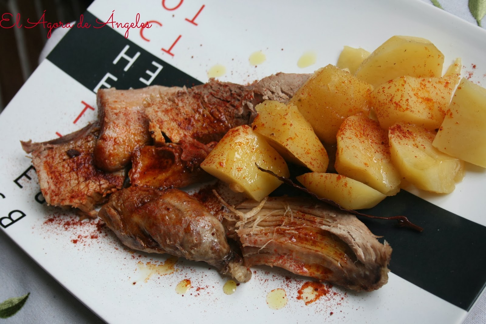 Una vez pasado este tiempo, se deja enfriar y se retira el lacón de la olla. Se puede cortar en lonchas y servir con patatas cocidas y pimentón.