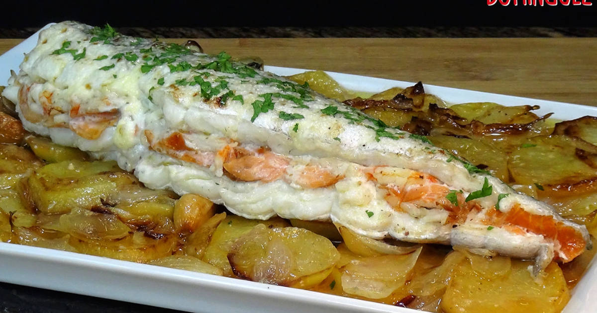 Receta Fácil de Merluza Rellena al Horno con Salmón, Gambas y Mayonesa