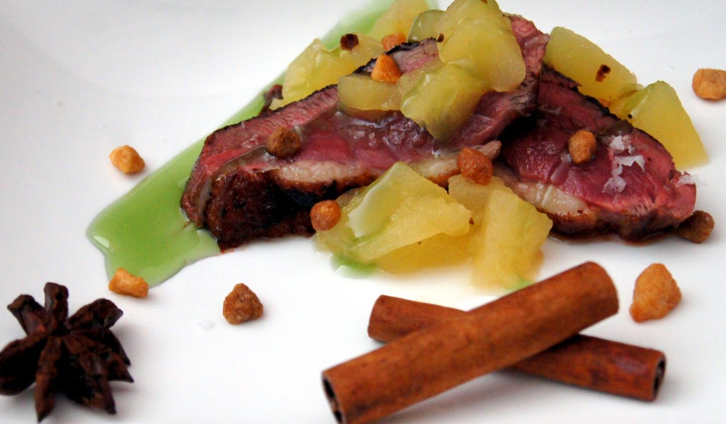 Deliciosa combinación de sabores: la salsa de manzana realza la exquisitez del magret de pato.